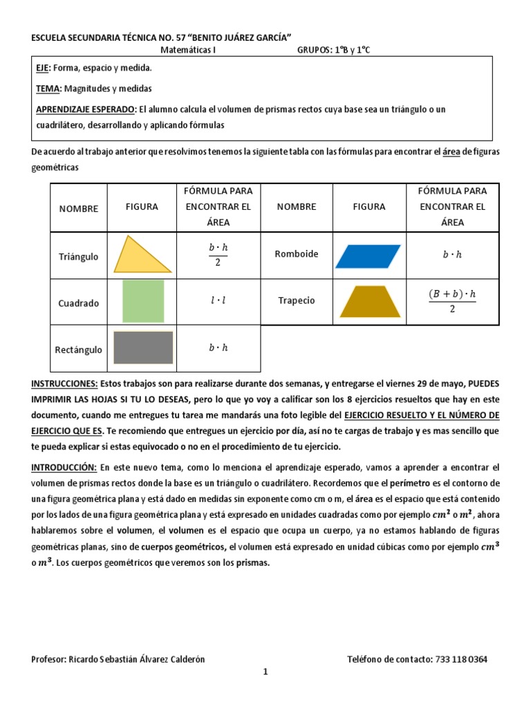 Busca tu tarea de matemáticas 1. Fórmulas para calcular el volumen de cubos y prismas rectos páginas 210. Correo del maestro primer grado:
